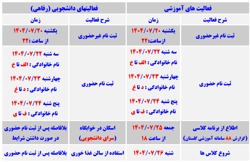 📌 خواهشمند است با دقت اطلاعیه‌ها را مطالعه نموده و طبق زمان‌بندی اعلام‌شده اقدام فرمایید.