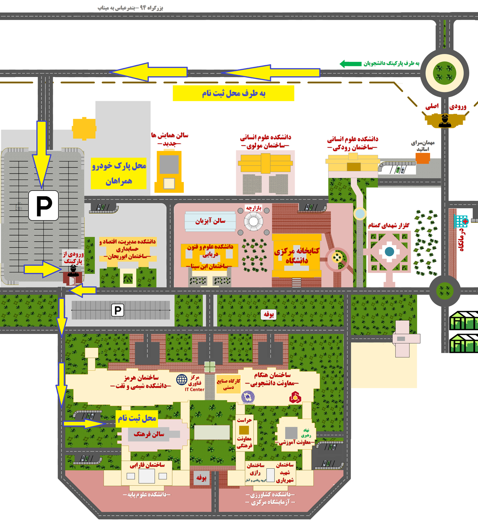 پذیرفته‌شدگان پردیس اصلی دانشگاه هرمزگان: بندرعباس،کیلومتر 9 جاده میناب، پردیس دانشگاه هرمزگان، سالن فرهنگ
