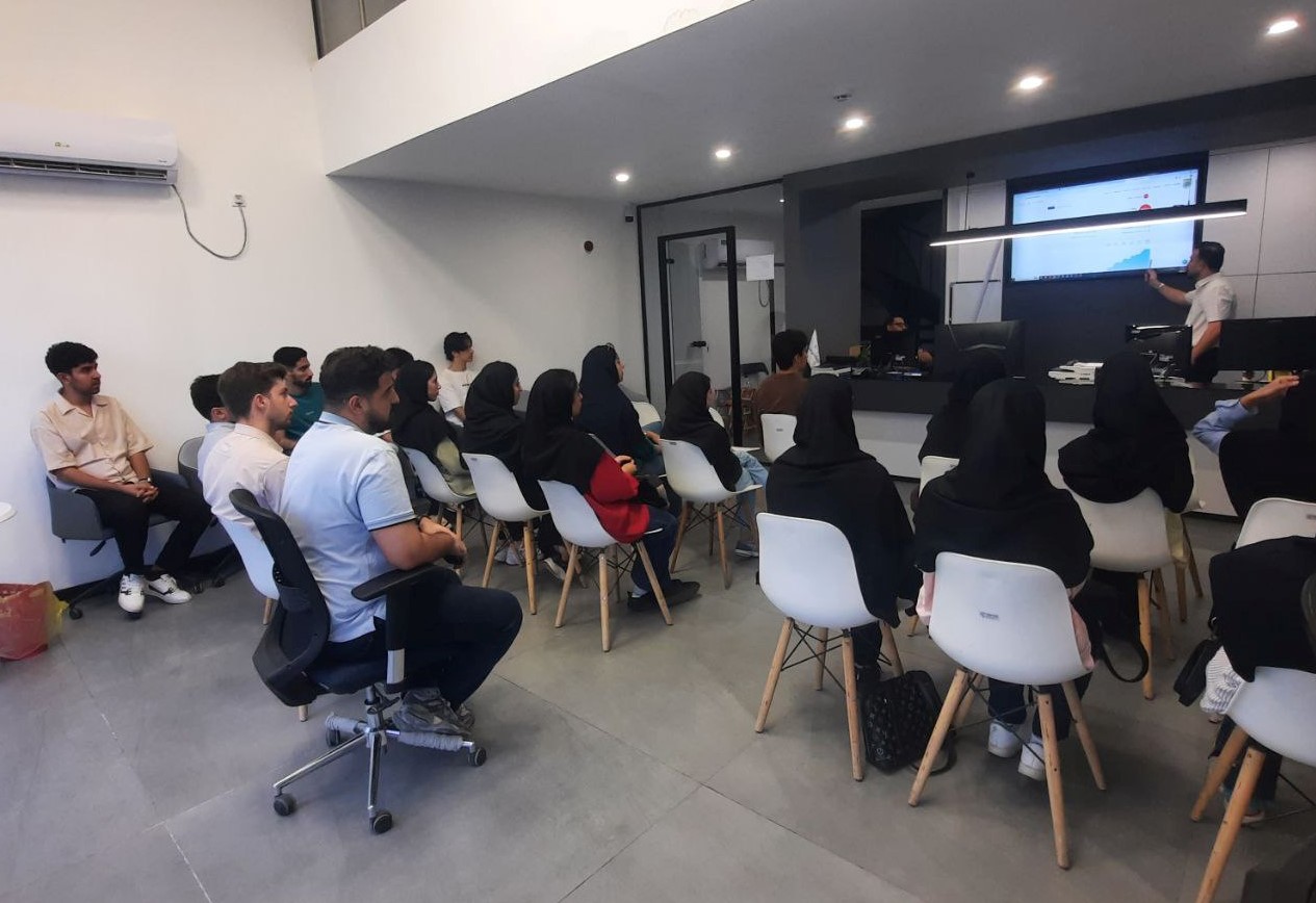 این بازدید که از ساعت ۱۴ تا ۱۶ برگزار شد، با ارائه تخصصی نماینده کارگزاری مفید- جناب آقای مهندس امین پورمیرزا همراه بود. در این بخش، دانشجویان با ساختار بازارهای مالی ایران، نحوه عملکرد بورس، انواع صندوق‌های سرمایه‌گذاری، اصول تحلیل بازار و همچنین نگاهی اجمالی به روندهای بین‌المللی آشنا شدند. فضای آموزشی ایجادشده، فرصتی کم‌نظیر برای درک واقعی‌تر سازوکارهای بازار سرمایه و ارتباط مباحث نظری با تجربه میدانی فراهم آورد.