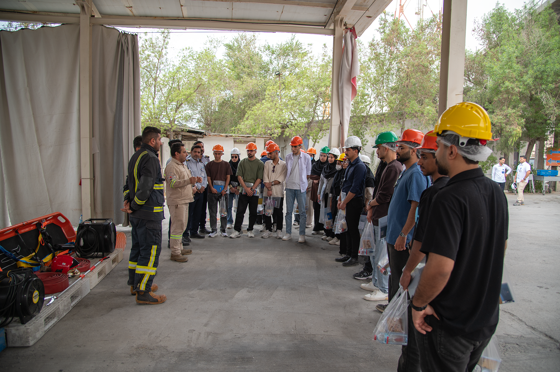 در ادامه، دانشجویان در قالب گروه‌های مختلف وارد سایت عملیاتی شدند و از نزدیک با بخش‌های متنوع تولید، از جمله واحدهای فرآیندی، تجهیزات فعال، خطوط تولید محصولات پلیمری نظیر پلی‌استایرن کریستال و همچنین سازوکارهای ایمنی در مجاورت فلرها آشنا شدند. کارشناسان شرکت، توضیحات دقیق و مرحله‌به‌مرحله‌ای از روند تولید تا محصول نهایی ارائه کردند که با استقبال و رضایت دانشجویان همراه بود.