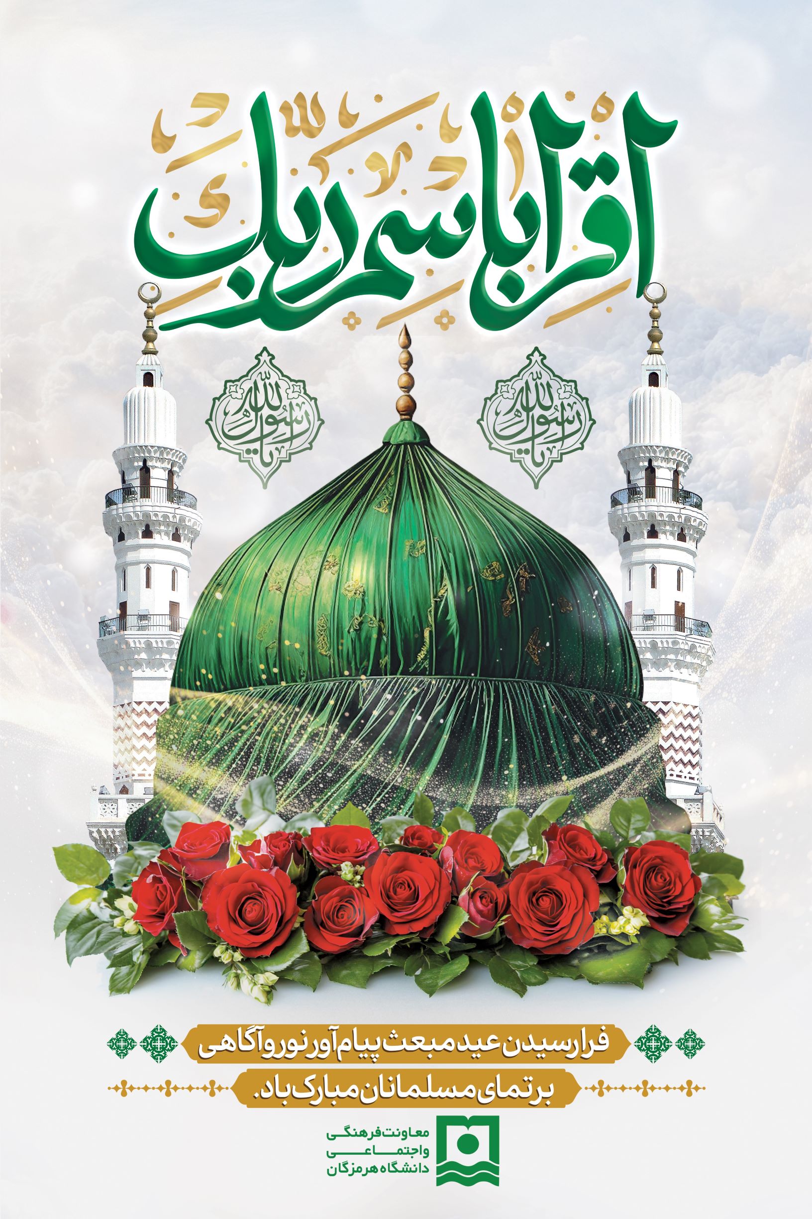 ضمن عرض تبریک خجسته و صمیمانه عید سعید مبعث به تمامی اساتید گرانقدر، دانشجویان نخبه و کارکنان خدوم دانشگاه هرمزگان، دعا داریم با الهام از سیره پیامبر اکرم (ص) و با تکیه بر همدلی و همکاری، در مسیر ساختن کشوری آباد و جهانی سرشار از صلح و عدالت گام‌های استوار برداریم و آینده‌ای درخشان برای نسل‌های آینده رقم بزنیم.