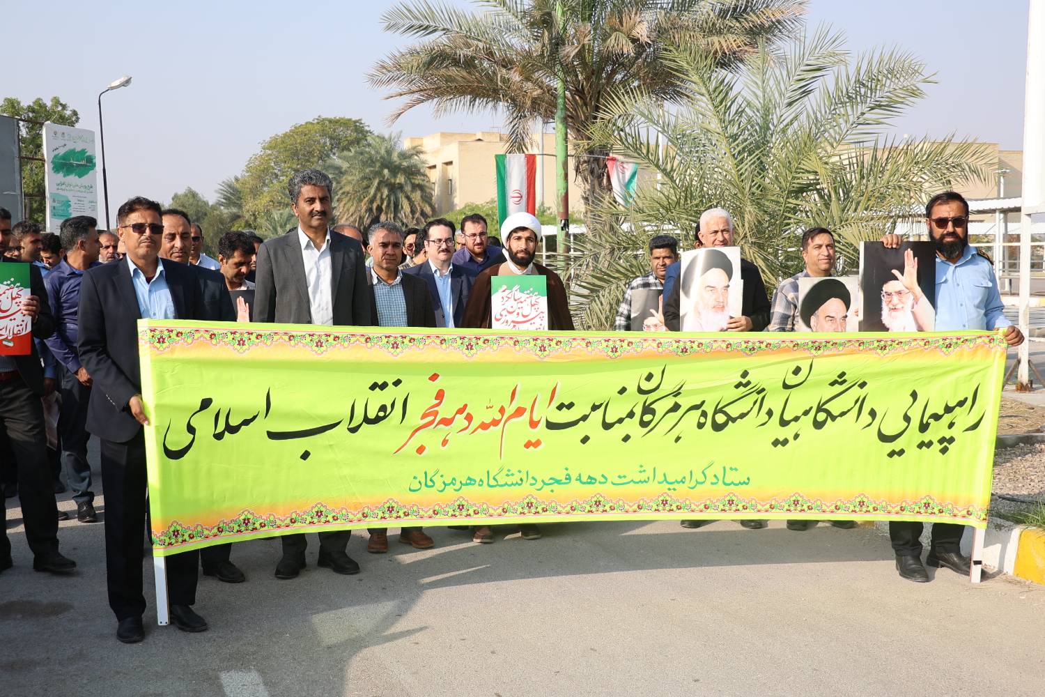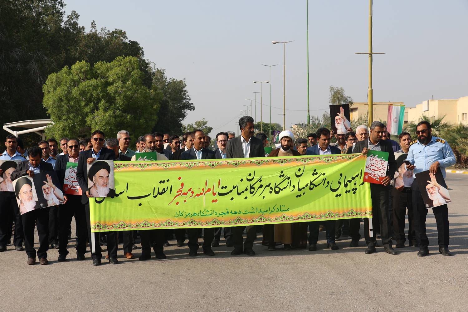 به مناسبت دهه مبارک فجر، راهپیمایی با حضور هیئت‌رئیسه، اساتید وکارکنان دانشگاه هرمزگان برگزار شد.