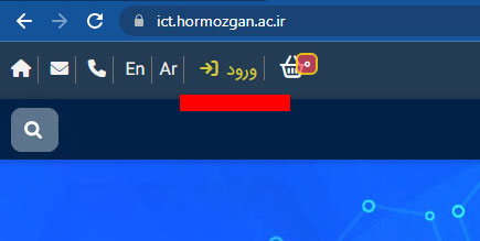 جهت بازیابی حساب کاربری خود وارد سایت دانشگاه شوید، از بالای منو سمت راست گزینه ورود کلیک نمایید.