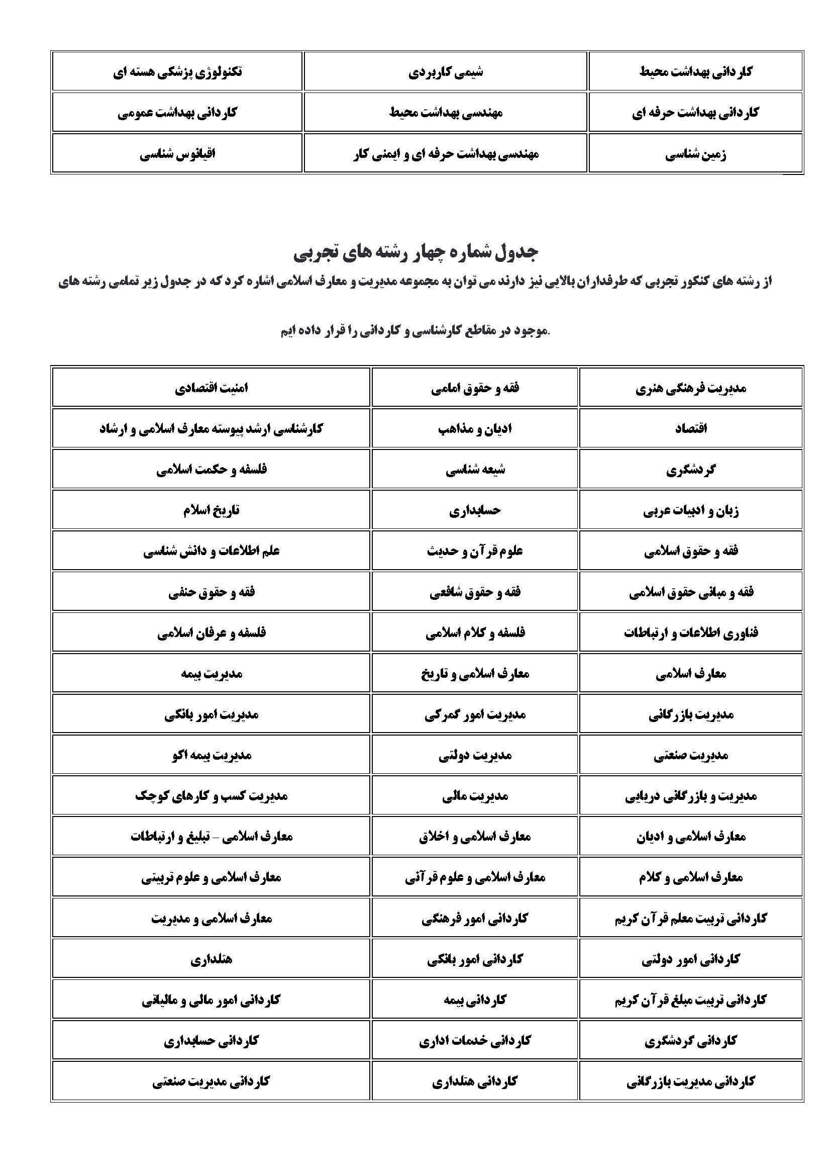 رشته های گروه تجربی